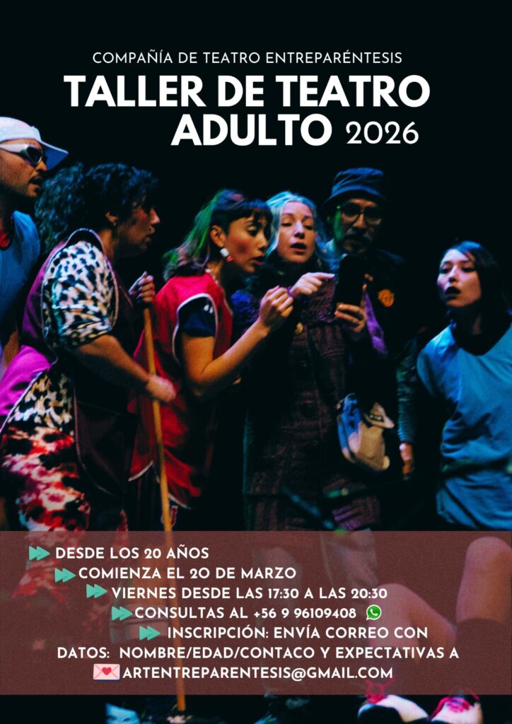 La Compañía de Teatro Entreparéntesis anunció el inicio de su Taller de Teatro Adulto 2026, dirigido a personas desde los 20 años. Las clases comenzaron el 20 de marzo y se realizarán los viernes entre las 17:30 y 20:30 horas.