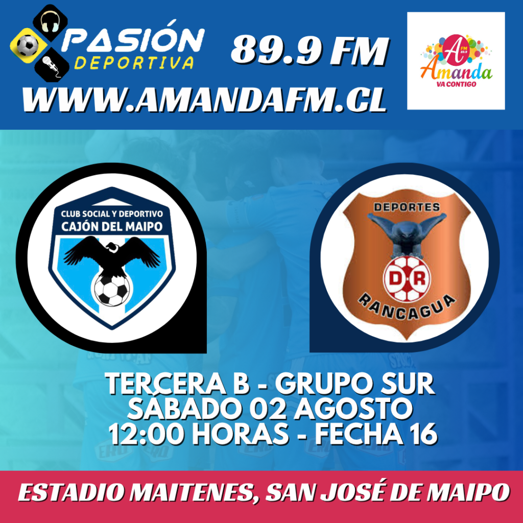 Este sábado 2 de agosto, a las 12:00 horas, el Club Social y Deportivo Cajón del Maipo recibirá a Deportes Rancagua por la Fecha 16 del Grupo Sur de la Tercera B. El encuentro se disputará en el Estadio Maitenes, San José de Maipo, y promete ser un enfrentamiento decisivo para las aspiraciones de ambos equipos en la tabla de posiciones.