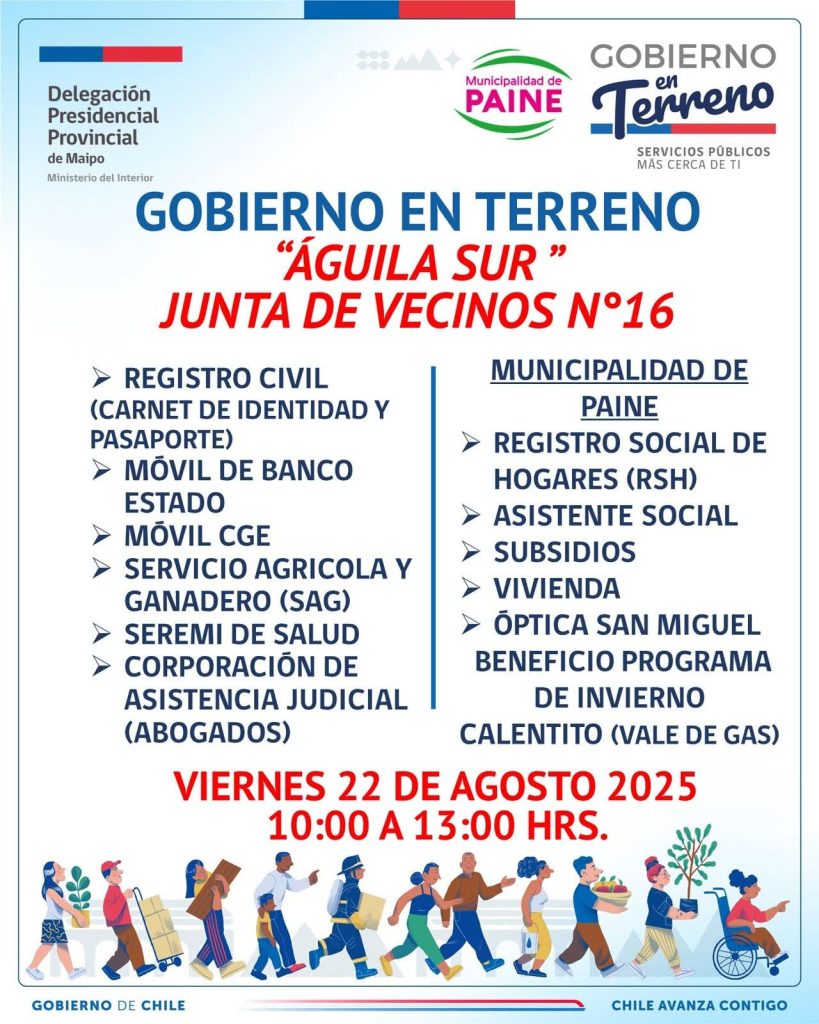 La Municipalidad de Paine informa servicios que participaran del Gobierno en terreno en el sector Águila Sur.