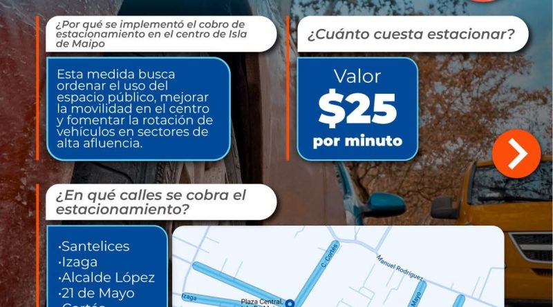 Isla de Maipo comienza marcha blanca en la implementación del Plan de Estacionamientos en el centro de la comuna!