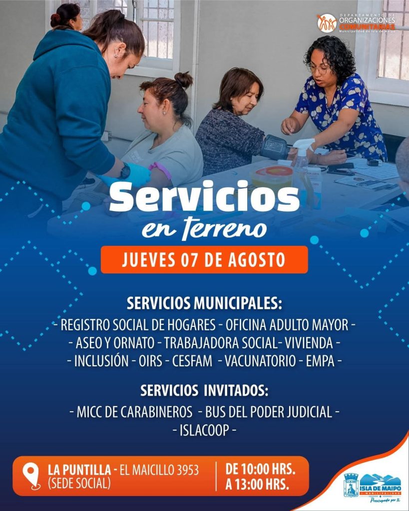 👩💻🤱 ¡Atención vecinos de la Puntilla de Lonquén! Este jueves 7 de agosto llevaremos nuestros «Servicios en terreno»!