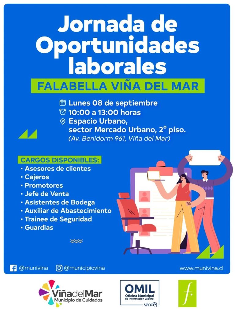 Este lunes 8 de septiembre, te invitamos a participar de la Jornada de Oportunidades Laborales organizado por el Municipio y Falabella.