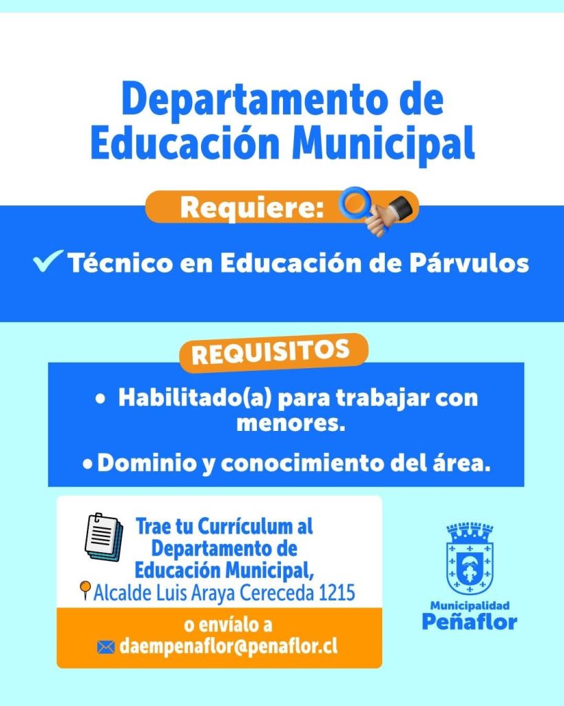 #OfertaLaboral #EducaciónParvularia #Peñaflor
