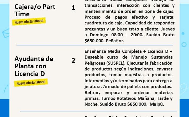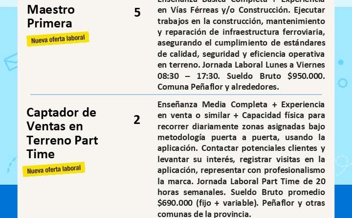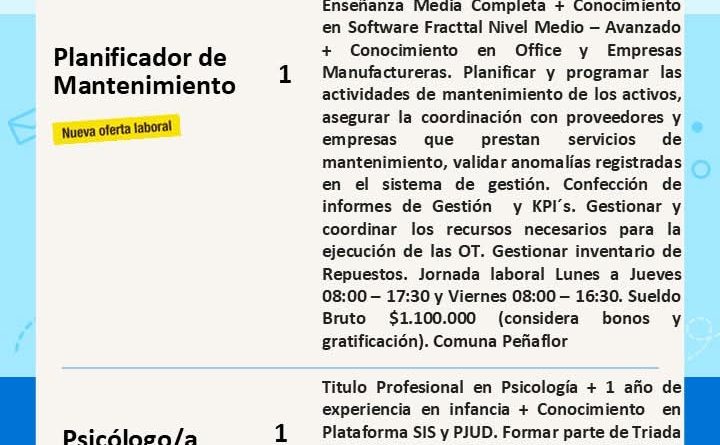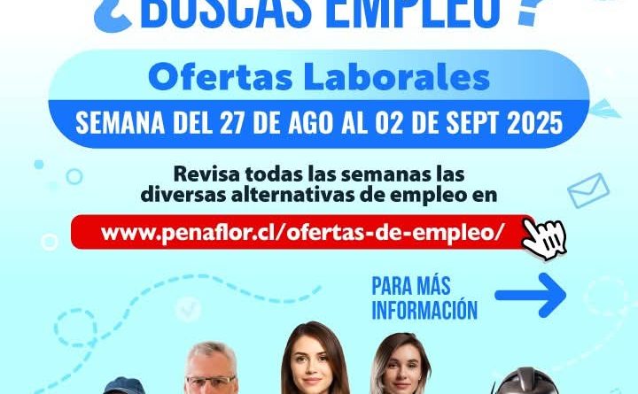 ¿Buscas trabajo? Revisa las vacantes disponibles esta semana y postula aquí 👉 https://penaflor.cl/ofertas-de-empleo/ o
