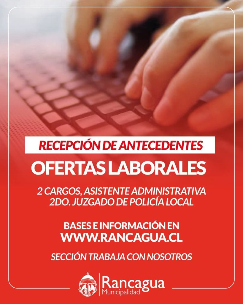 Desde la Municipalidad de Rancagua informan la apertura de 2 cargos de Asistente Administrativo para el 2do. Juzgado de Policía Local.